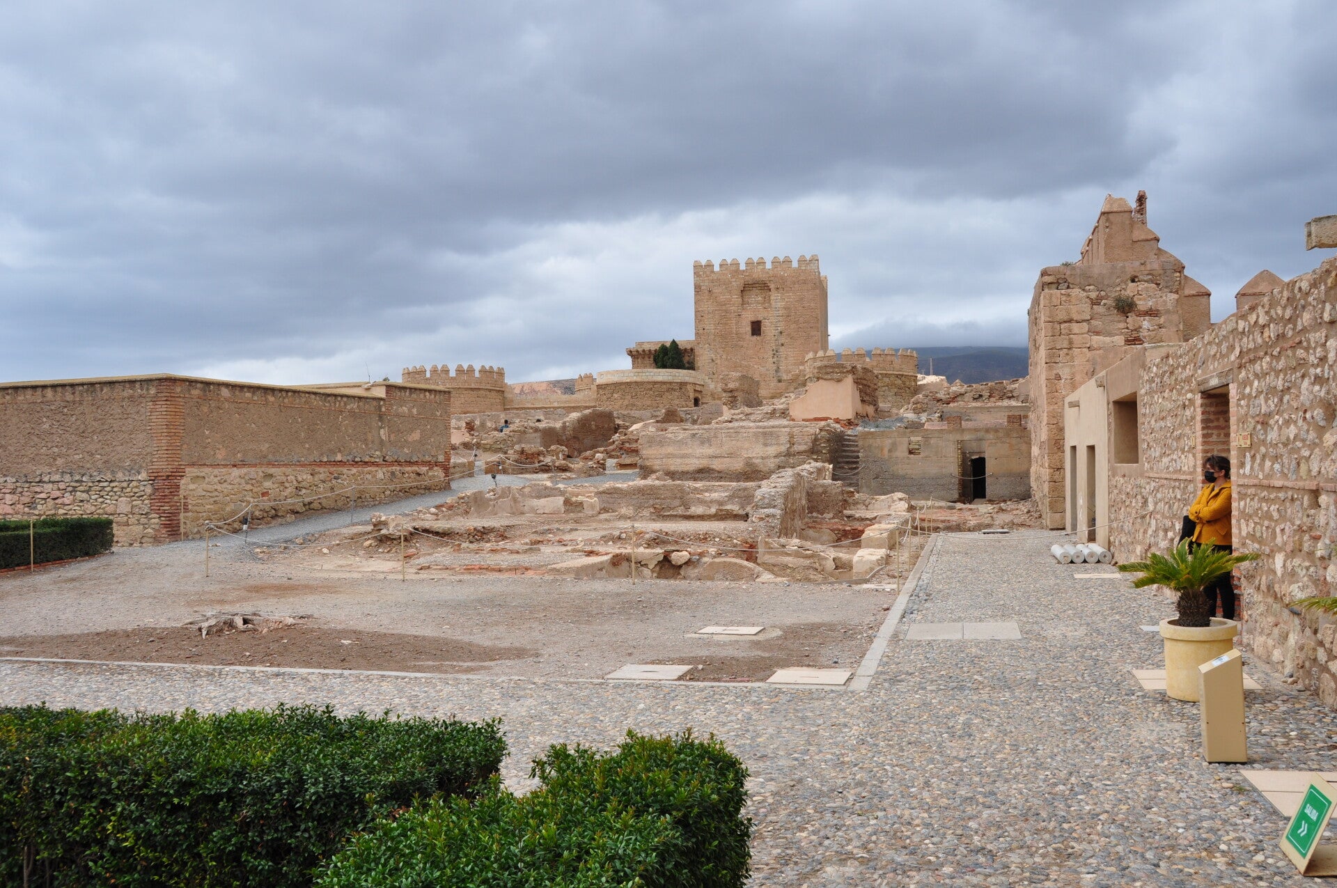 Nu lukt het ons de entree van het gigantische fort te bereiken. Na een koffie bij het tegenoverliggend cafeetje, stappen we door de moorse poort het complex binnen en bestijgen we de trap naar de tuinen. Het Alcazaba de Almería is een Arabische fort gebouwd in de 10e en 11e eeuw in opdracht van kalief Abd al-Rahman III en is het één na grootste Arabische fort in Andalusië. Toegang is gratis en er is best wel wat toeloop deze weekenddag. Door de omvang van deze ommuurde ruïnes en de vele uitzichten vanaf de kasteelmuren over de onderliggende stad en haven, houdt deze historische plek ons bijna 2 uur zoet.