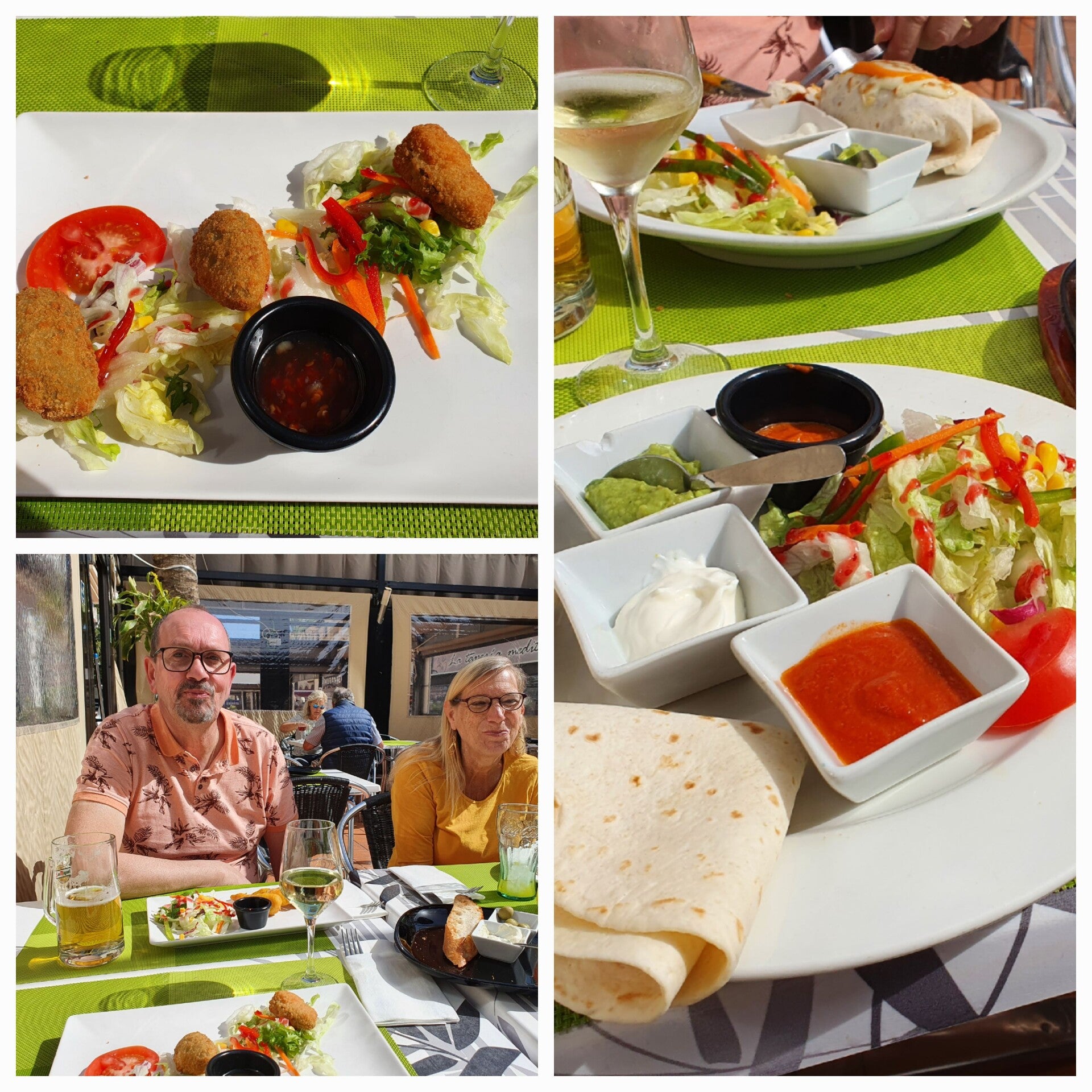 Bij terugkomst ruimen we alles op en rijden gezamenlijk naar het centrum voor een afscheidslunch bij de Mexicaan. Op het terras in het zonnetje is het genieten van een lekker maaltje.