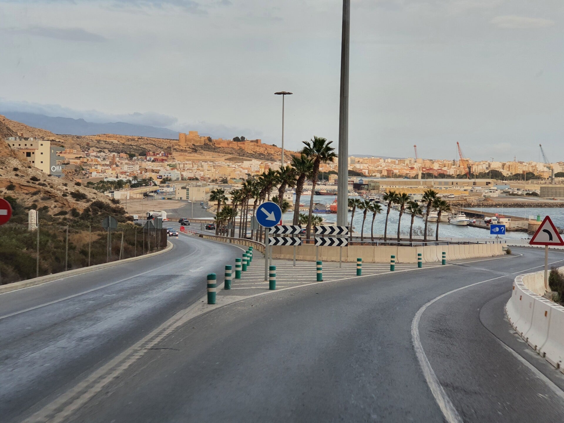 Bij zevenen arriveren we op het havenhoofd in Almería, waar een gedeelte van de betaalde P is gevorderd door de vele campers (€6,45 per 24 uur). Een ideale plek om morgen de stad te verkennen. Ook hier staat behoorlijk wat wind, dus draaien we de steunpoten omlaag, zodat de camper minder staat te schudden. Na de broodmaaltijd lezen en schrijven we nog wat.