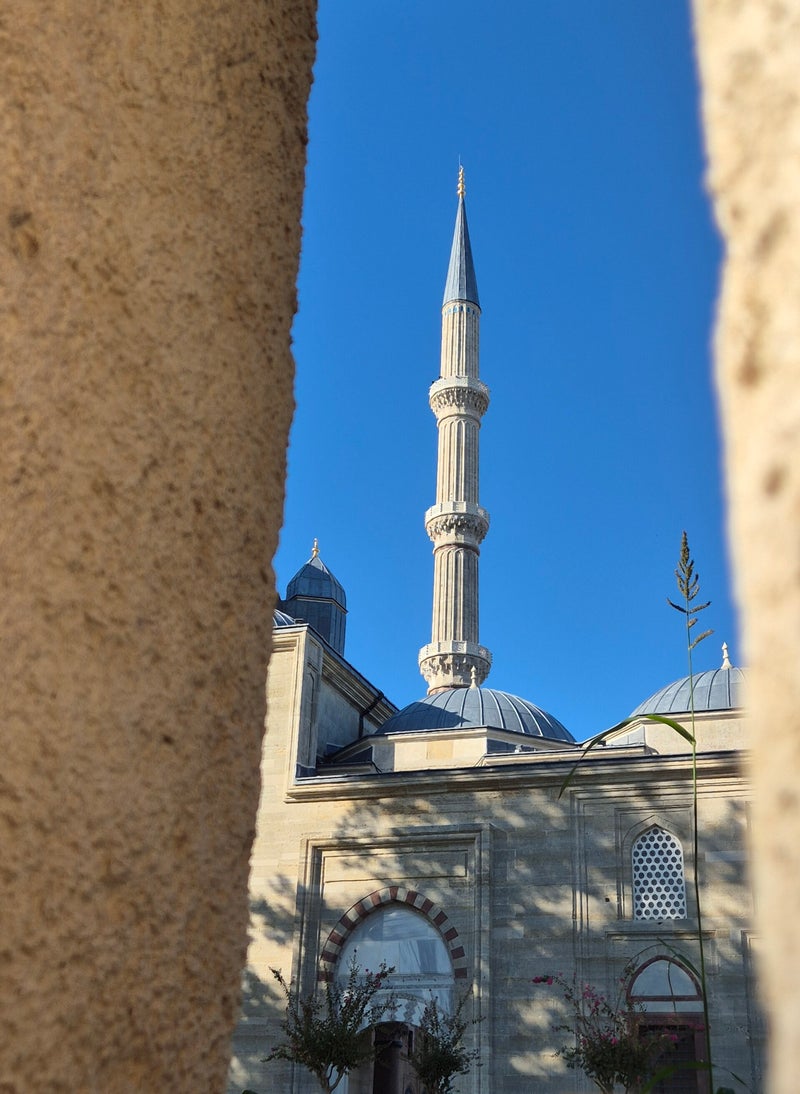 In Edirne parkeren we de camper op een betaalde parkeerplaats TL700 voor 24 uur niet ver van de grote Selimiyemoskee. Voordat we de stad inlopen proberen we zonder succes met de Wifi van een theehuis de gekochte esim van Marjos aan de praat te krijgen. Vriendelijke klanten aldaar proberen te helpen door ons naar een providerwinkel in de stad te brengen. Daar kunnen ze niets voor ons doen. Op een terrasje als ik inmiddels zelf ook al een esim heb geïnstalleerd, lukt het ineens wel. Nu zijn we allebei goed en ruimschoots voorzien van data de komende maand 😄.