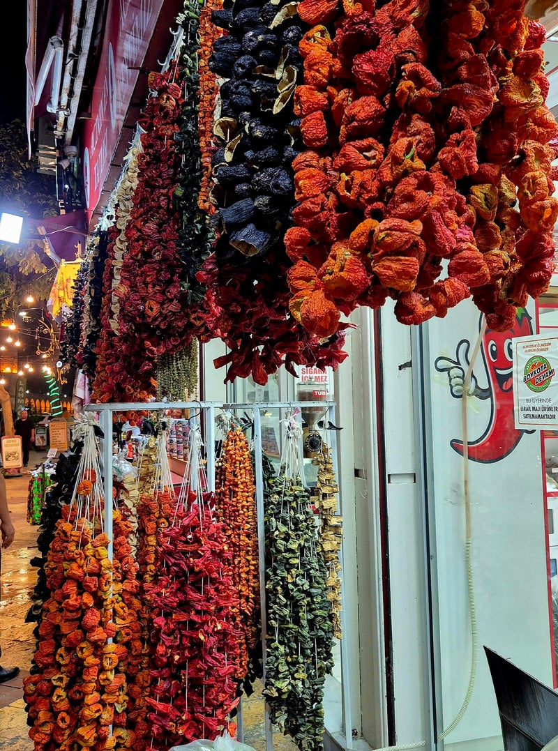 We lopen langs het prachtige Cinci Hamani, een 17e eeuws Turks bad, dat nog steeds wordt gebruikt en schuin gelegen achter de Kazdağ moskee. Overal zijn winkeltjes en shopjes die van alles en nog wat aanbieden. Uiteraard produkten met saffraan, maar ook een grote diversiteit van Turks fruit, sieraden en andere GBR (goed bedoelde rommel). Dat Turkse fruit moeten we overal proeven, net zoals saffraanthee. Om te voorkomen dat we de berg afrollen stoppen we maar na enkele smaaktesten.