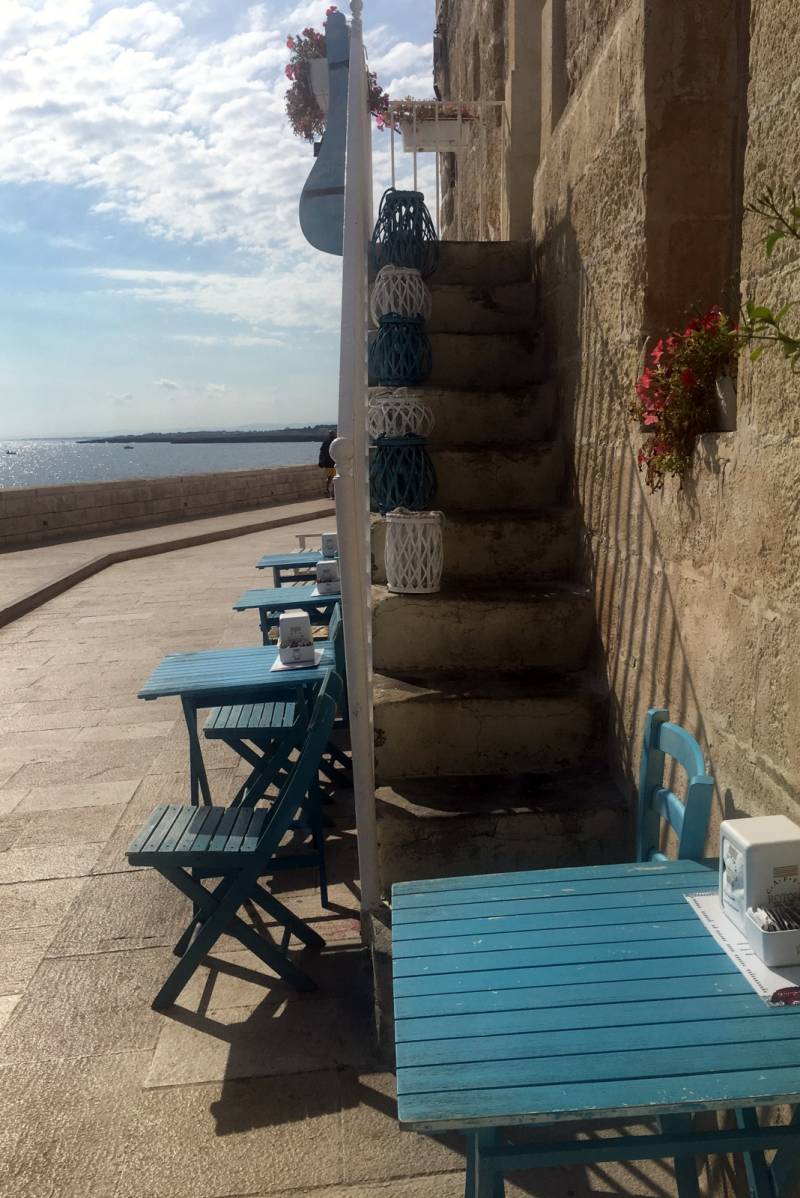 We parkeren de scooter en wandelen de zone 'pedonale' in en blijven langs de oude vestingwerken aan de kust lopen. Het zonnetje schijnt en dat versterkt het pittoreske beeld van de bedrijvigheid hier aan de haven. Op hun gemak voeren de mensen hun taken uit, zo zitten wat vissers hun netten te boeten, is een oudere man bezig met het splitsen van touw voor een nieuw kabeloog en een volgende slaat op de kade de inkt uit een inktvis. Onderweg strijken we neer op een terrasje en genieten in het zonnetje van een extra ontbijt en de superview over zee.