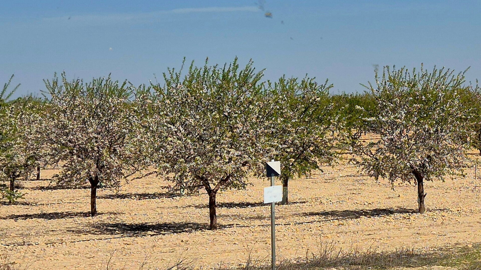 Kilometer na kilometer klimmen we langzaam omhoog, tot we de Spaanse hoogvlakte bereiken. Hier verandert het landschap opnieuw, minder weelderig, opener met soms rijen lage fruitboompjes. Volgens internet zijn het vooral amandelboompjes, die overigens momenteel prachtig in bloei staan.