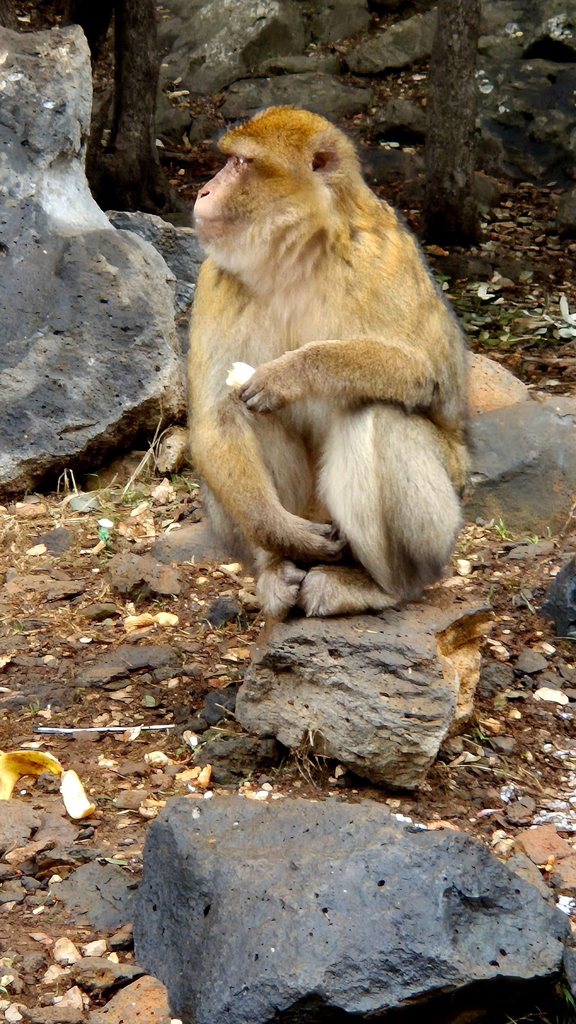 Eenmaal boven in het cederwoud zijn de eerste opstoppingen met auto's bij plekken waar de Berberapen zich graag laten voeren door de vrolijke meute. Ook wij strooien met wat banaan in het rond die met graagte door de apen worden opgepeuzeld. Na passage van de sleehellingen wordt de hoeveelheid sneeuw echt serieus. Verkeersborden aan de zijkant van de weg zijn veelal verborgen onder dikke weggeschoven sneeuw.