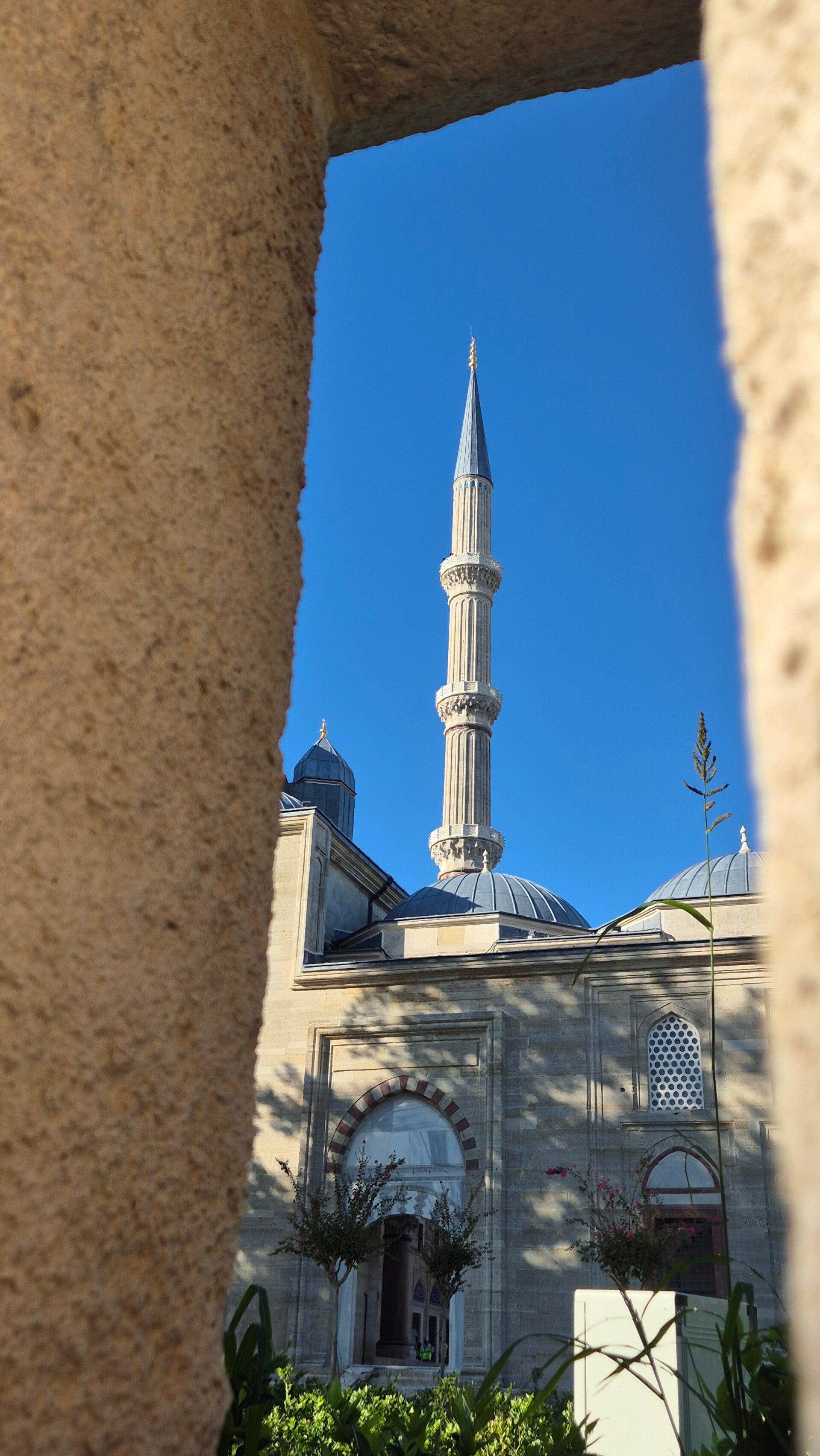 In Edirne parkeren we de camper op een betaalde parkeerplaats TL700 voor 24 uur niet ver van de grote Selimiyemoskee. Voordat we de stad inlopen proberen we zonder succes met de Wifi van een theehuis de gekochte esim van Marjos aan de praat te krijgen. Vriendelijke klanten aldaar proberen te helpen door ons naar een providerwinkel in de stad te brengen. Daar kunnen ze niets voor ons doen. Op een terrasje als ik inmiddels zelf ook al een esim heb geïnstalleerd, lukt het ineens wel. Nu zijn we allebei goed en ruimschoots voorzien van data de komende maand 😄.