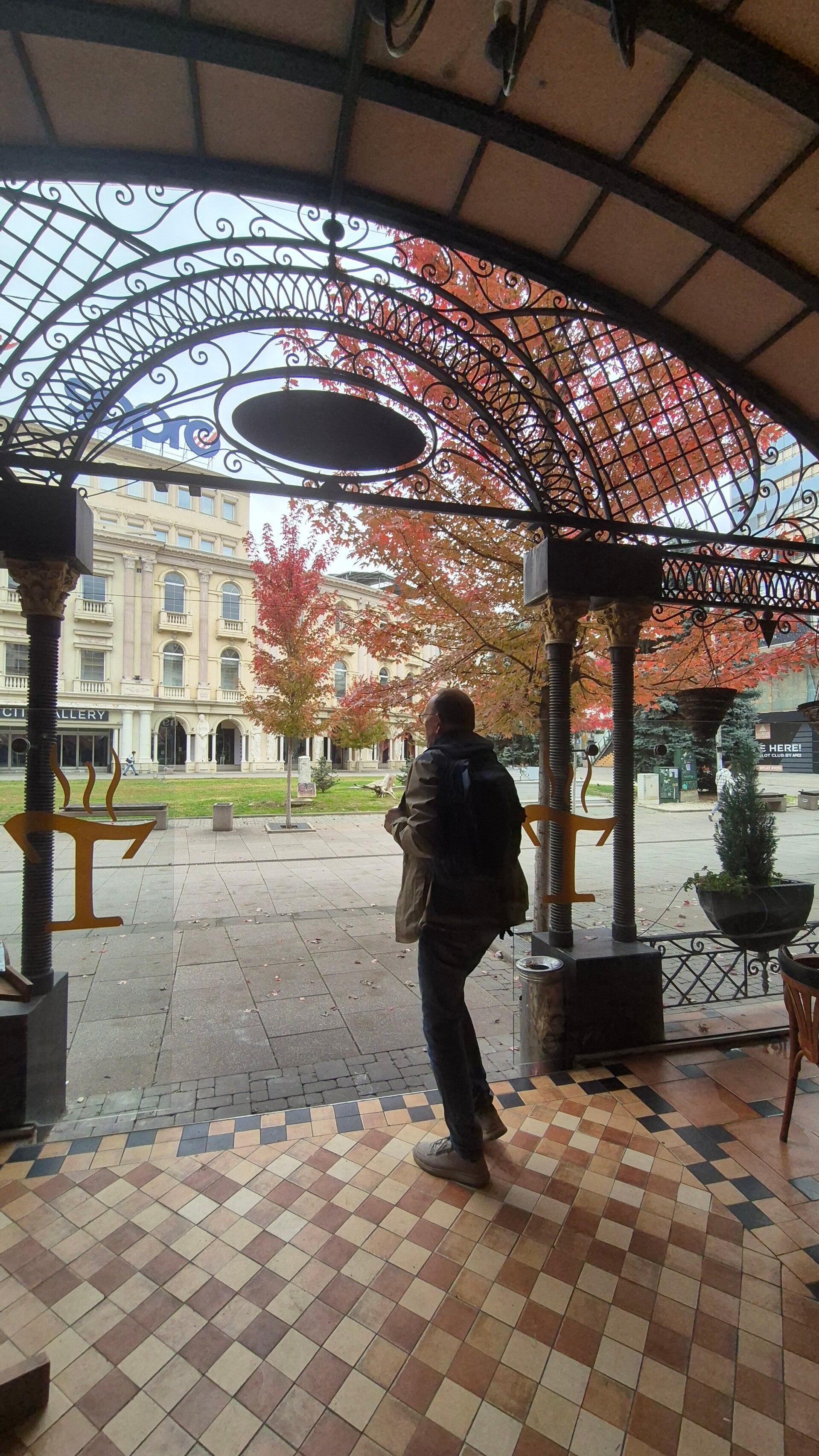 Op het weidse Makedoniaplein prijkt het gigantische standbeeld van Alexander de Grote te paard op een hoge zuil in een grote met leeuwen omringde fontein. De claim op deze historische koning, ook geuit door andere landen zoals Griekenland, houdt de gemoederen al decennialang bezig. Maar soit — groter dan hier wordt hij volgens mij nergens afgebeeld. Wat een joekel.