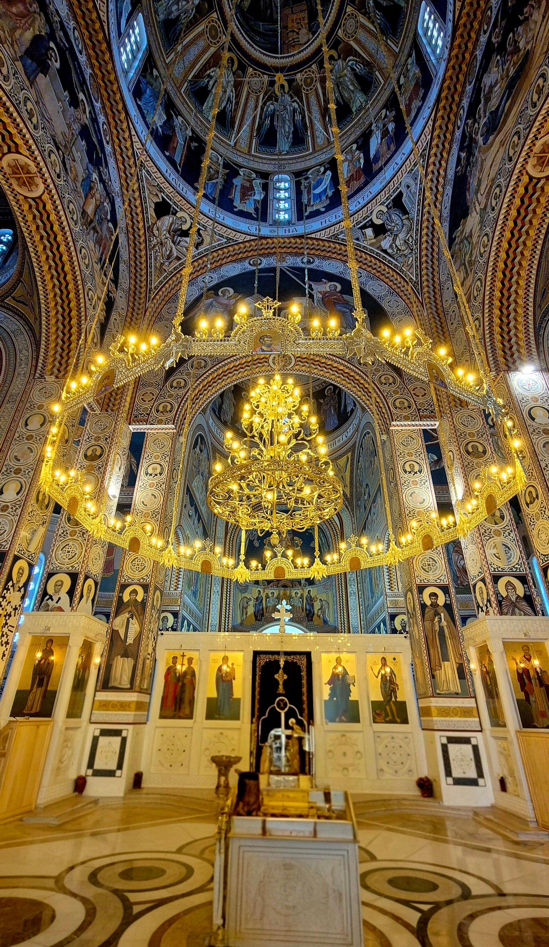 We lopen verder naar het herdenkingsgebouw voor Moeder Teresa, die in Skopje werd geboren. Een prachtig, eclectisch gebouw, waarbij vooral de moderne kapelarchitectuur in het oog springt.