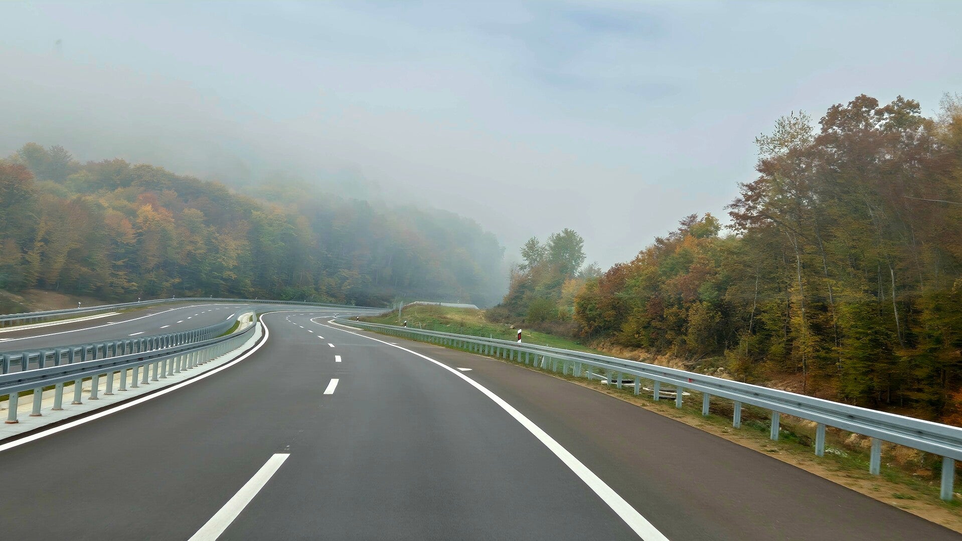Een koele nacht, heerlijk geslapen. Ondanks dat we hier in ons uppie stonden, voelden we ons geen moment onveilig. Voor vertrek maak ik de voorruit schoon om de lawine aan insecten die gisteren daarop te pletter zijn geslagen, te verwijderen. Rond half negen zijn we en route, die verrassend begint met een gloednieuw stuk tolweg, compleet met tunnels en spiegelglad asfalt.
