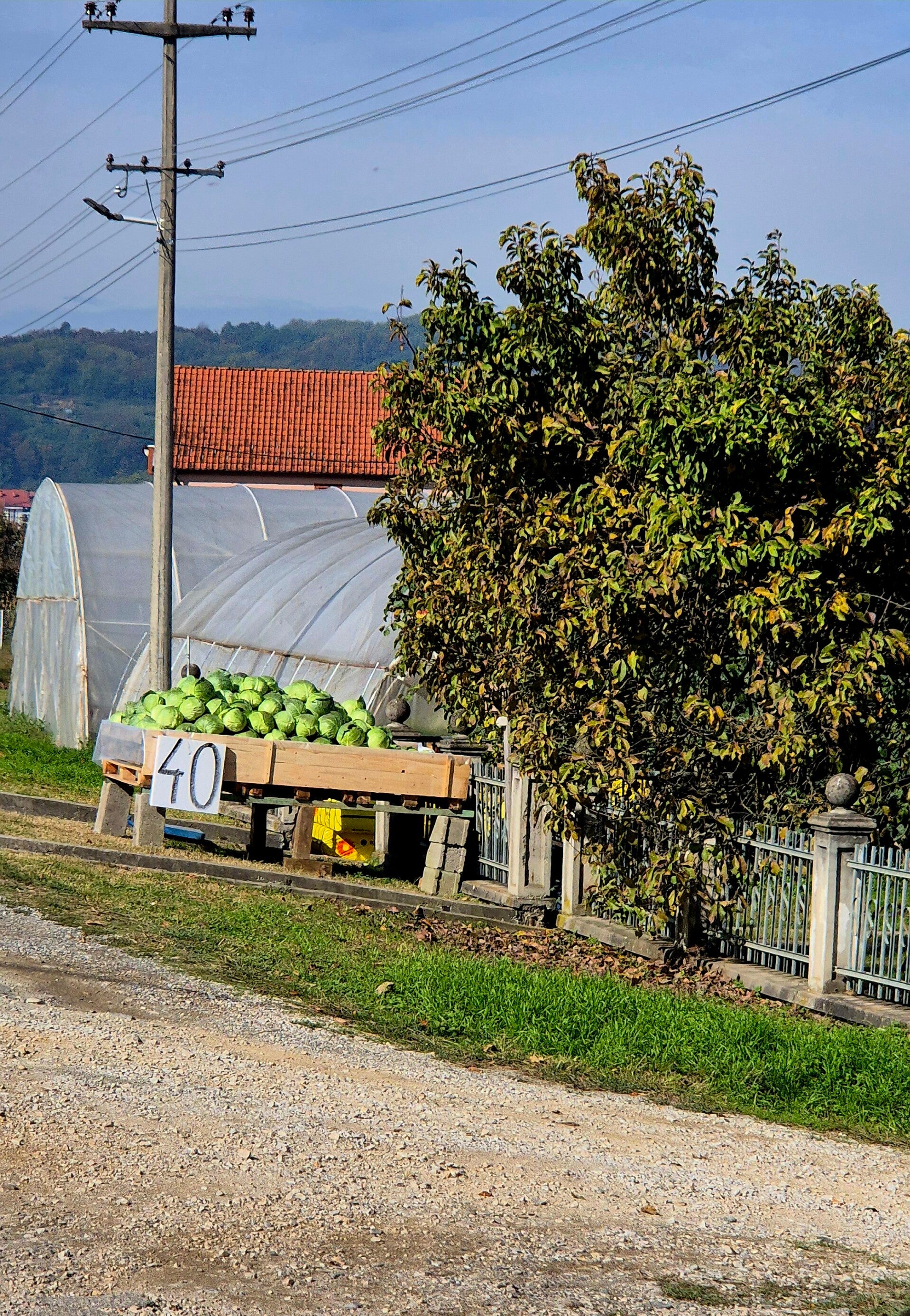 We vervolgen onze weg, die nu langs de rivier de Drina loopt, de natuurlijke grens met Bosnië. Op de velden zijn boeren druk met de laatste werkzaamheden voor de winter, hooioppers worden gestapeld rond houten staken en overal wordt hout verzameld voor de kachel.