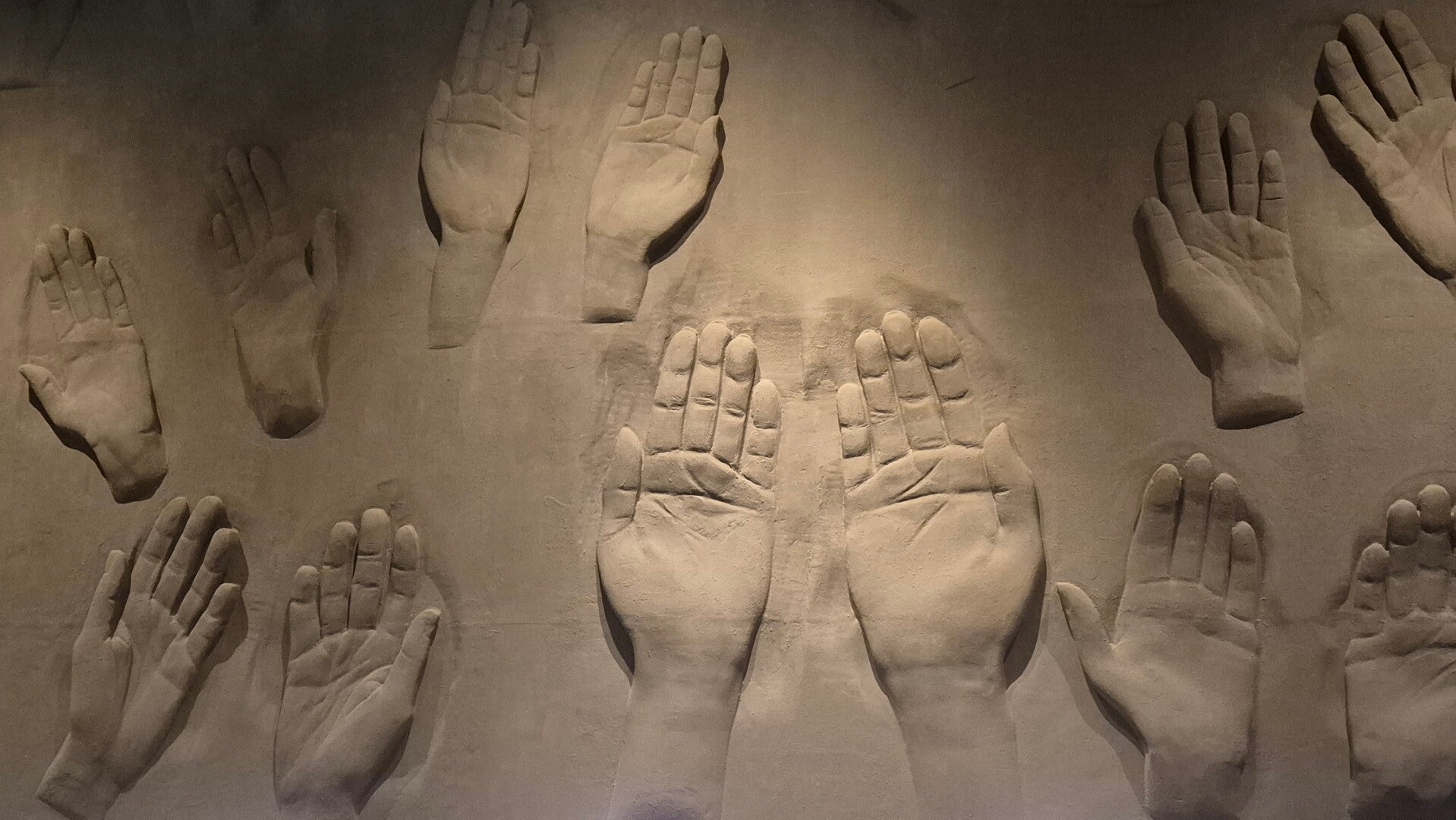 Een gedenksteen memoreert het getal 8.372, iedere paal een leven, een naam, een verhaal. Een besef wat je raakt.